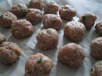 Wet your hands lightly and form the meat mixture into 1 balls. Place them on a parchment lined baking pan and bake about 15 minutes until lightly browned.